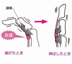 まいます。すると、腱が滑らかに腱鞘を通り抜けることが出来なくなり、引っ掛かりを感
