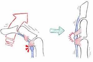 それでも無理に通そうとして力を加えると、ピンと跳ねるようにして腱が腱鞘を通過しま
