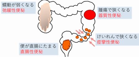 便秘には「機能性便秘」と「器質性便秘」があり、器質性便秘は大腸手術や炎症などが原
