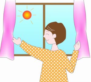 まずは、朝起きたら、窓やカーテンを開けて部屋に太陽光をとり入れましょう。太陽の光