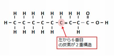 「二重結合」と言います。この結合が鎖の末端(n末端)から3つ目で起きている脂肪酸