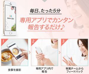 ・専用アプリで、朝食の内容(写真でもOK)と体重を報告。