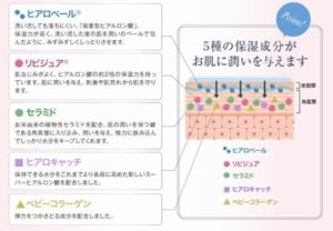 お肌に潤いを与える5種類の保湿成分もしっかり入っています。
