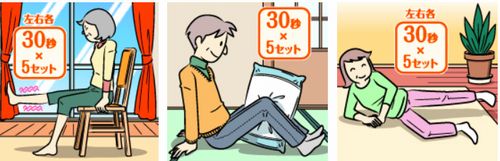 同じようなものに、床にすわり両足で枕を強くはさむ運動や横向きに寝て片足を床と平行