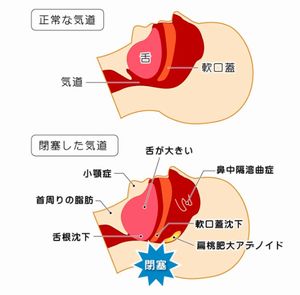 睡眠薬」「口呼吸」などがあります。またこれらの原因が複数集まって睡眠時無呼吸症候