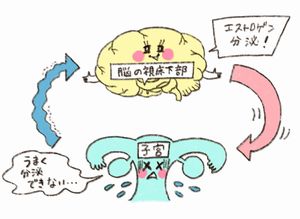 女性ホルモンは、脳の視床下部から脳下垂体、卵巣へと指令が伝わって分泌されていて、