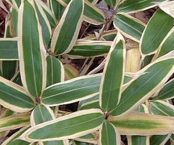 クマザサの葉は、竹とよく似ていますが、白い線で隈取りされてい