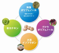 海藻ポリフェノール、ブドウポリフェノール、茶カテキン、大豆イソフラボン
