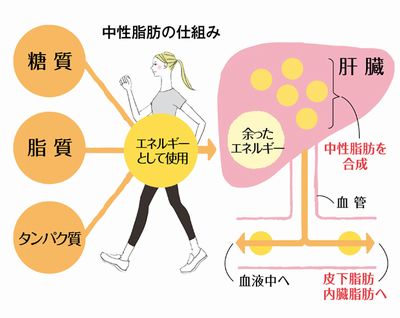 血液中の中性脂肪の値が高くなると、普通は皮下脂肪として蓄えられます。つまり、肥満