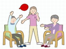 の代表はレクリエーションゲーム(基礎代謝・身体機能の強化)で、うちわテニスや風船