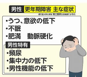 男性の場合は、女性のような急激なホルモンの変化による強い症状は多くありませんが、