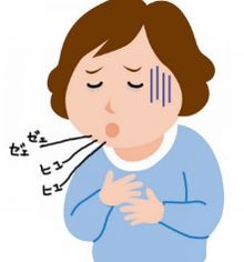 ーゼー、ヒューヒューという音の出る呼吸(喘鳴)、たん、呼吸困難などで、大人も子供