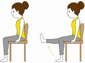 子に座り、片足をまっすぐ椅子の高さまで伸ばし、そのまま10秒間静止します。足を降
