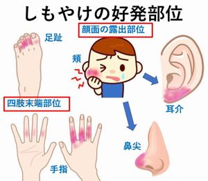 などの毛細血管が多い末端部分にしもやけができることも少なくありません。毛細血管の