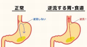 の筋肉がゆるむことで、食べ物や胃酸が食道へ逆流してしまい、食道に炎症が起きてしま
