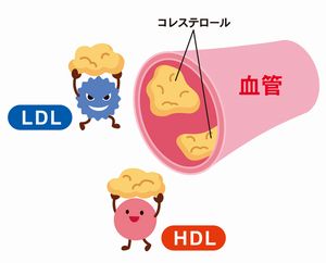 その違いは、LDLは血管壁にくっつきやすく、HDLは血管壁にくっついたコレステロ