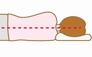 横向きで寝る場合は、頭を枕に乗せたとき、頚椎(首の骨)が真っすぐになることが大切
