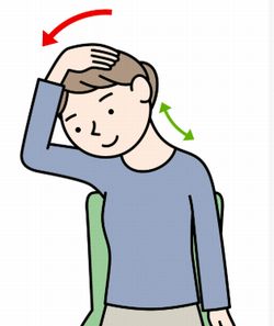 次は、首回りのストレッチです。仕事中でもできるものは、「首を左傾け、右肩を引き下