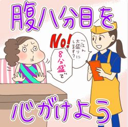 などを控える、甘い物を食べ過ぎない、過剰飲酒を控える、野菜類の摂取を増やす、腹八