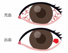 充血にも2種類あって、白目の周辺が赤い(結膜充血)と黒目の周りが赤い(毛様充血)