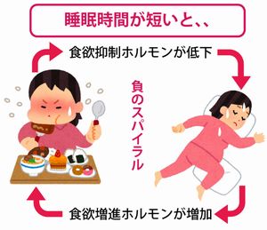 ン)の分泌が減少し、グレリン(食欲増進)ホルモンの分泌が増加します。つまり、睡眠