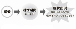 0157に感染すると、数日から1週間程度の潜伏期間を経て、下痢(頻繁な水様便や血