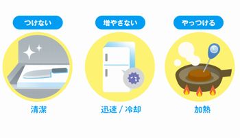 とを習慣化しましょう。一般的に、細菌やウイルスは熱に弱いので、基本は加熱処理と覚