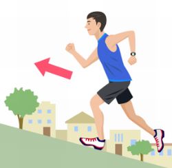 腸腰筋を鍛えるには、少し大股(足の裏1つ分ほど)で歩く、前傾姿勢で坂道ダッシュす