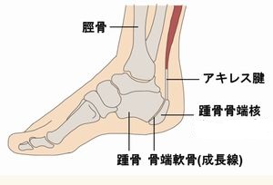 かかとの骨は、成長軟骨と踵骨骨端核に分かれていて(大人になるとこの2つの骨が合わ