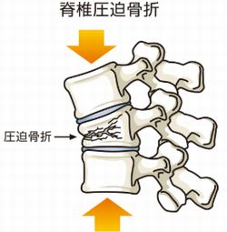 圧迫骨折は背骨(脊椎の椎体部分)がつぶれたように変形する骨折で、骨粗しょう症が原