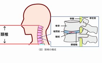 頚椎(首の骨)は、7つの骨(椎骨)で構成されていて、椎間板という組織でつながって