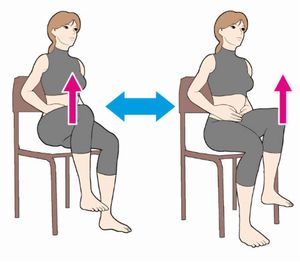 腸腰筋のトレーニング法は、背筋を伸ばして椅子に浅く腰をかけ、片足の太ももをゆっく