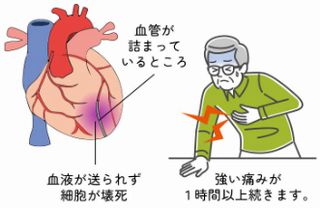 心臓の筋肉に血液を供給する冠動脈という血管が詰まることで、十分な血液が心臓の筋肉