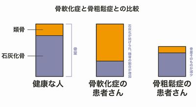 で、それにより骨の石灰化に支障が生じた状態です。一方で、骨粗しょう症とは、骨の新
