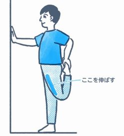 膝を曲げて、踵がお尻につかないような人です。該当する人は、大腿四頭筋のストレッチ
