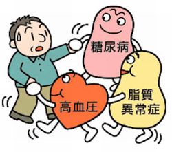 つまり、内臓脂肪が蓄積(メタボ)して、高血圧症・高血糖・脂質異常症を誘発し、動脈