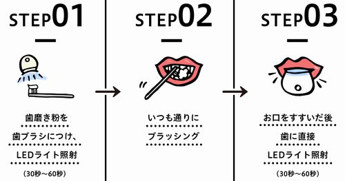 ・歯ブラシに歯磨き粉をつけ、LEDライトを約1分間照射