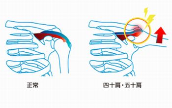 中年以降に、特に覚えがないのに「肩を動かすと痛みを感じる」とか「腕が後ろに回らな