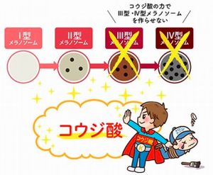 ですでにご存じの人も多いと思いますが、麹菌が発酵するする過程で作り出す「コウジ酸」