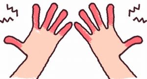 しもやけの主な症状としては、初期は、赤みがかった腫れ、痛みやかゆみですが、悪化す