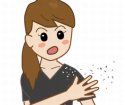頭、顔、額、鼻、耳、脇の下などに「赤い斑点」や「乾燥した皮膚」が付着しているよう