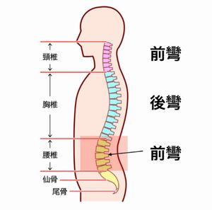られていますが、頚椎や腰椎のように前向きにカーブを描いていることを「前弯」と言い、