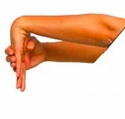 良く使う)人は、手の甲が上になるように腕を前に伸ばし、反対の手のひらで包み込むよ