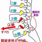 腰椎変性すべり症とは、わかりやすく言えば「腰椎が前後にズレる」ことです。一般的には中高年の女性に多い傾向があるようです。