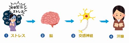 り、それを気にすることでストレスとなり、さらに大量の汗をかく