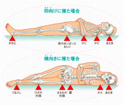 具体的には、骨の出っ張った部分で、仰向けに寝ているときは仙骨部(おしりの中央の骨